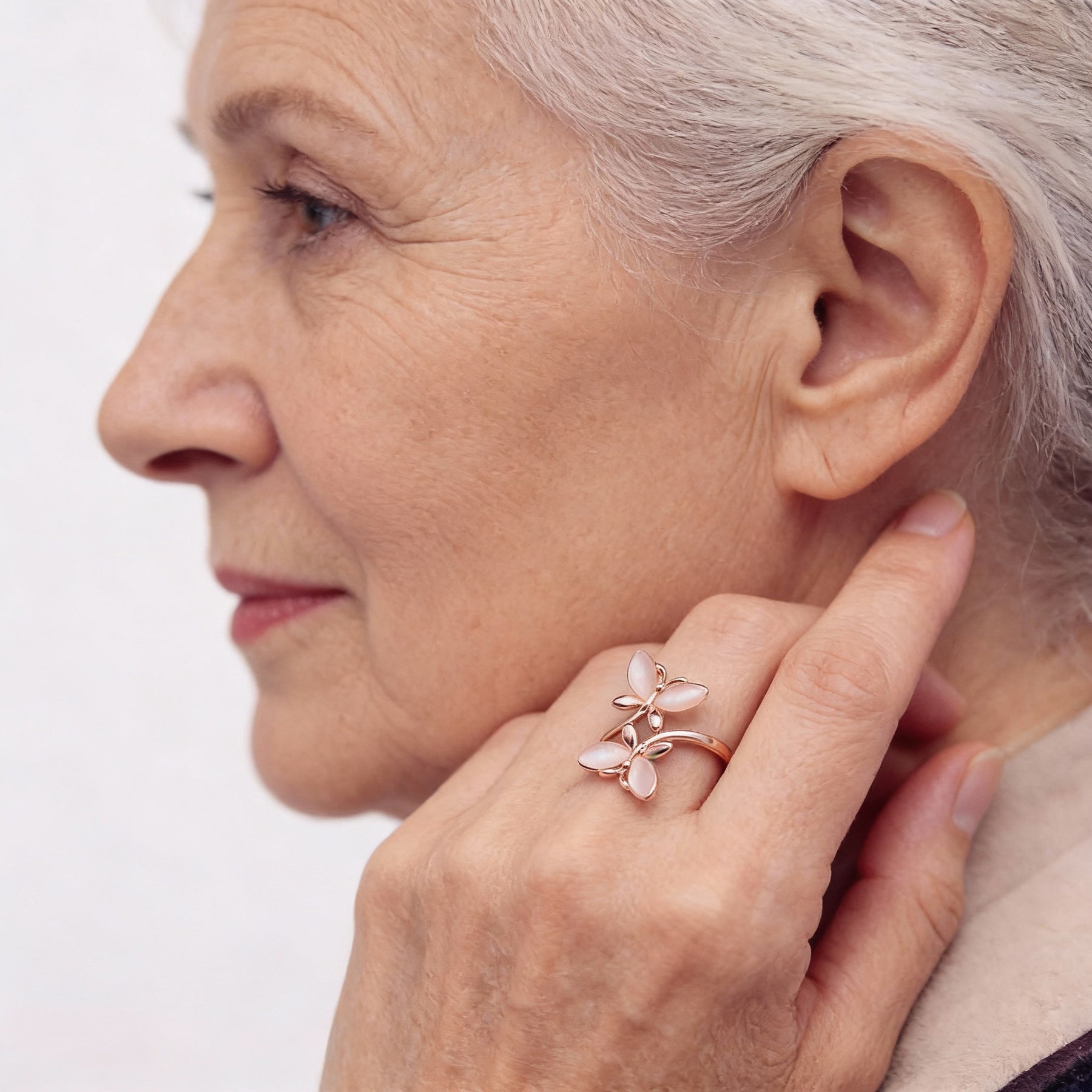 Pierścionek Elegancki z Kwiatami w Różowym Złocie