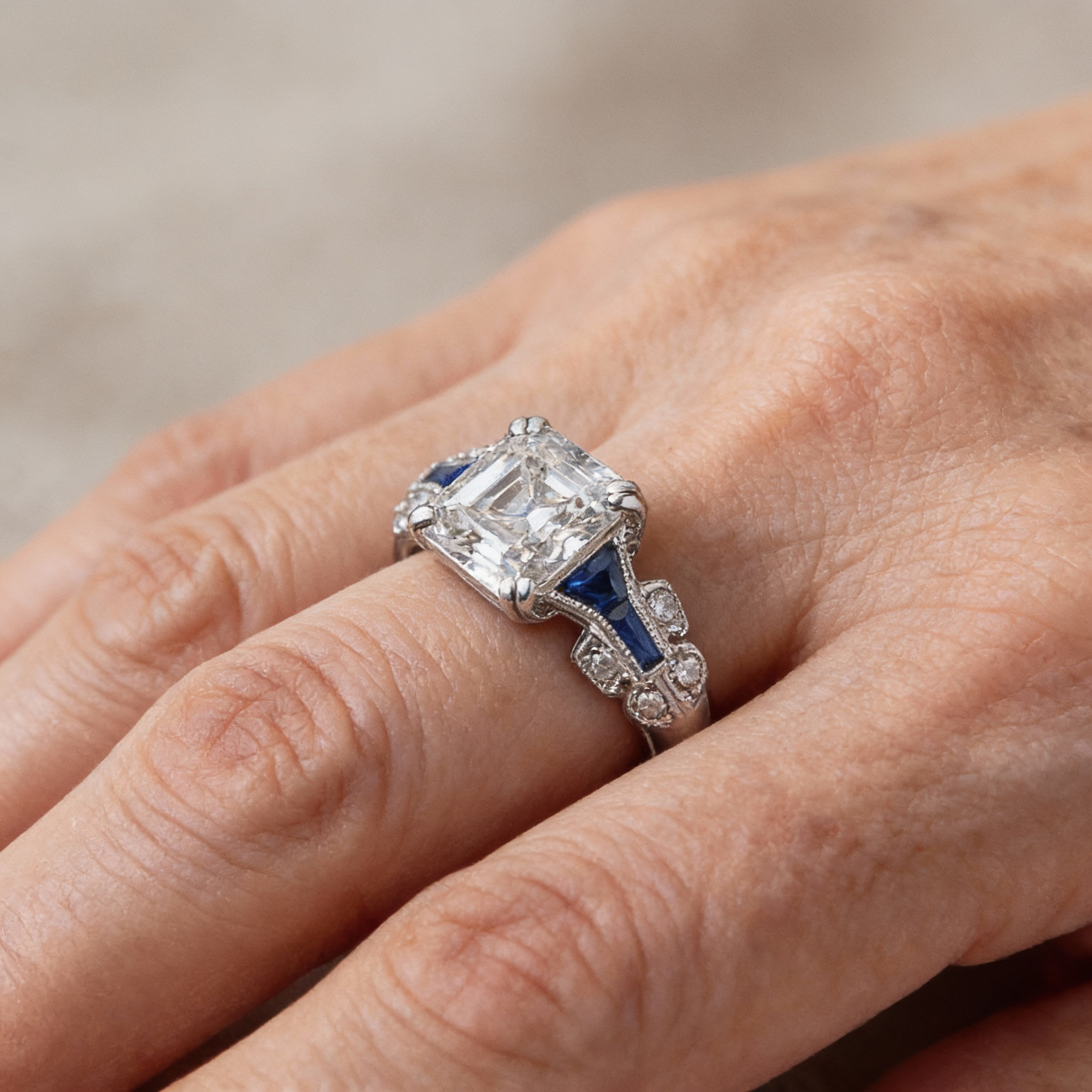 Pierścionek Vintage Błyszczący w Niebieskim i Srebrze