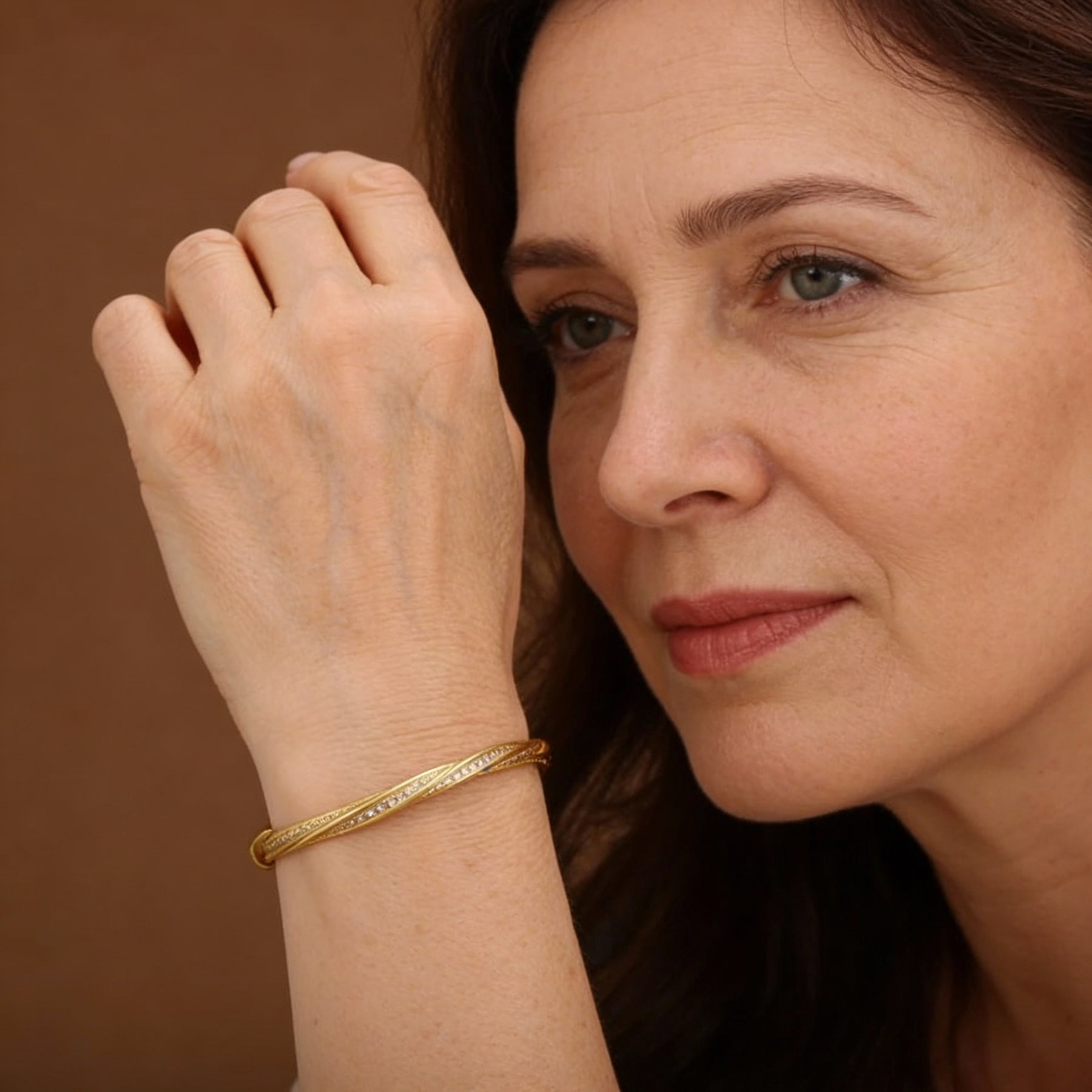 Elegancka Dwurzędowa Bransoletka Kryształowa ze Złotem