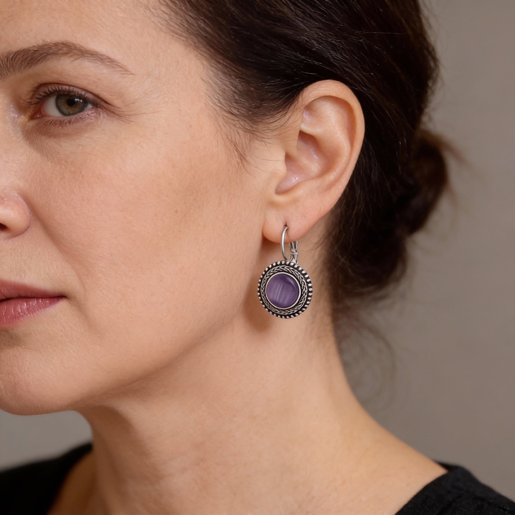 Kolczyki Boho Srebro Kamienie Okrągłe