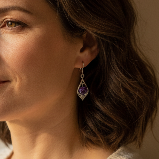 Kolczyki Srebro Kryształ Fioletowy