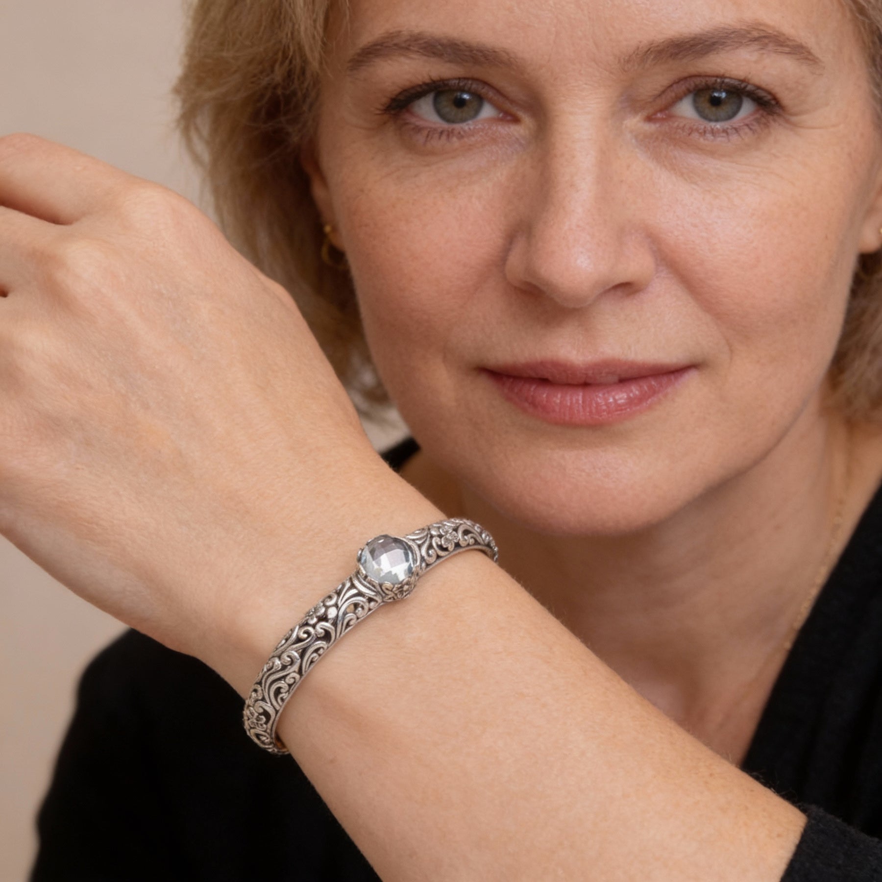 Otwarta vintage bransoletka srebrna z cyrkoniami