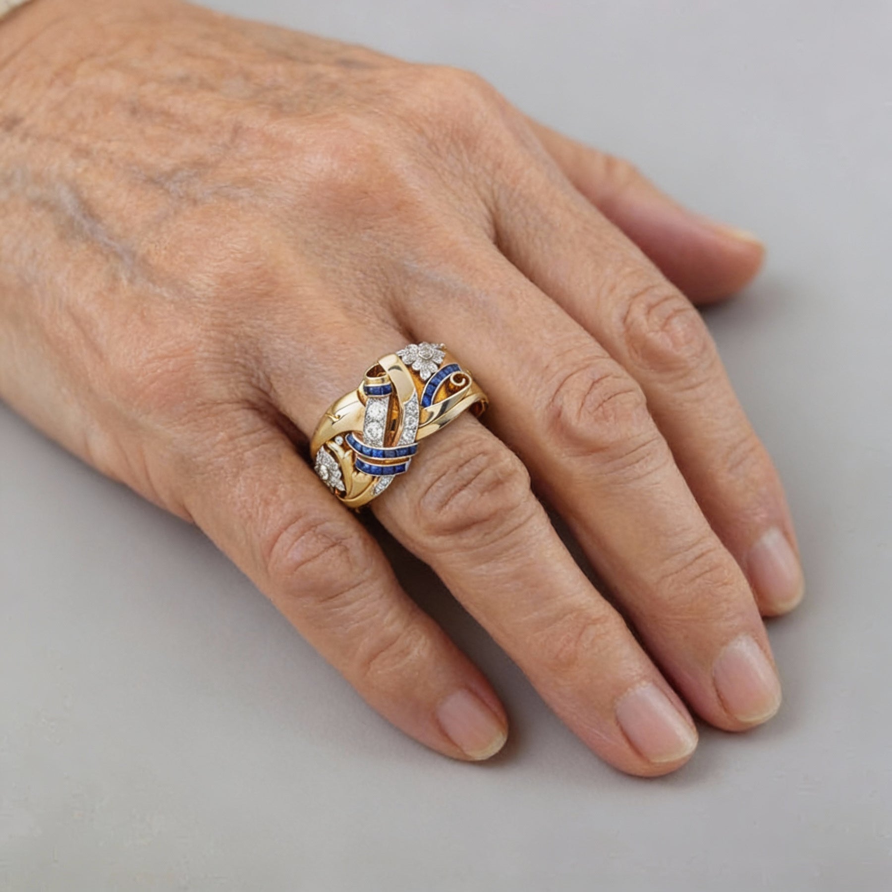 Pierścionek Vintage Złoty z Niebieską Cyrkonią