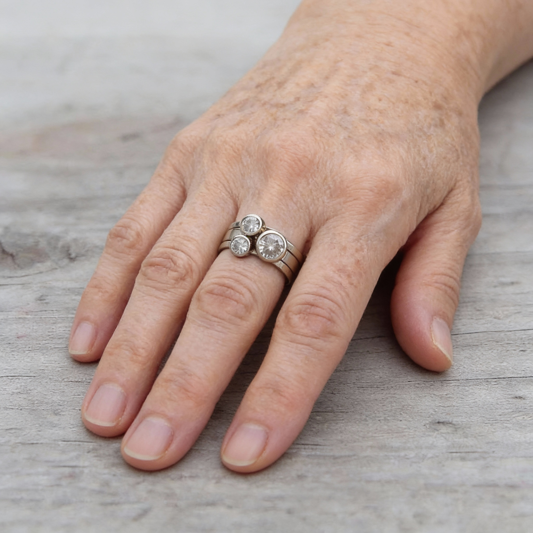 Potrójny Pierścionek Vintage z Cyrkoniami