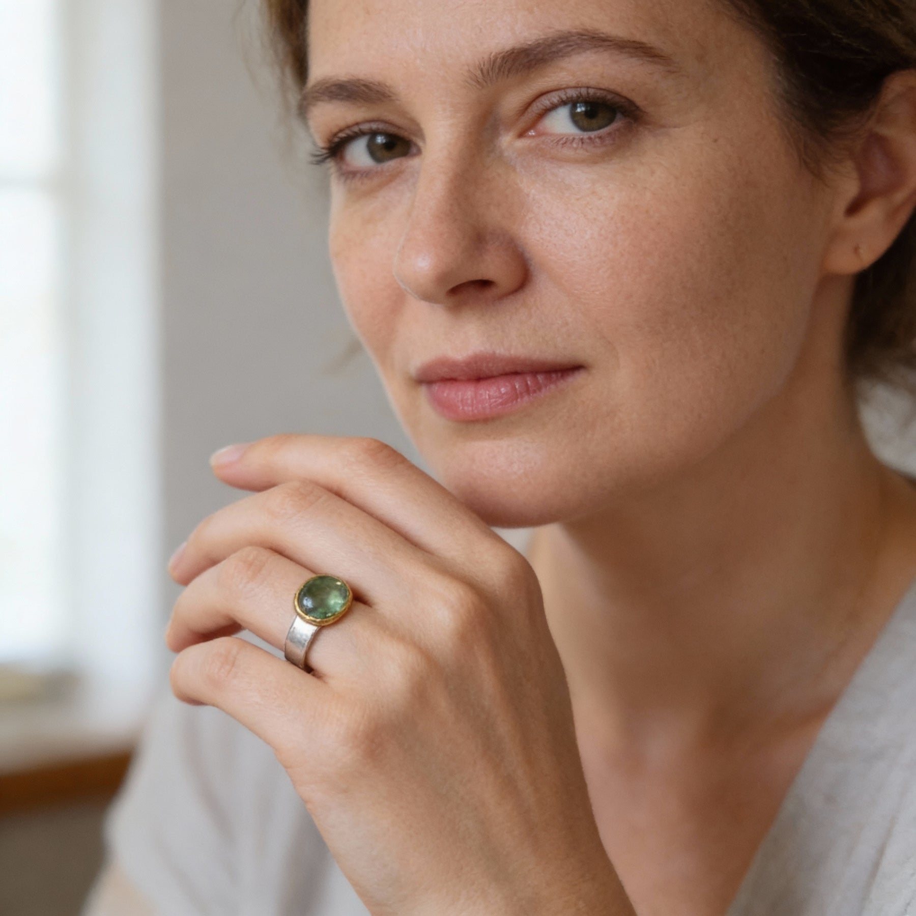 Zielony Pierścionek Vintage z Okrągłym Kamieniem