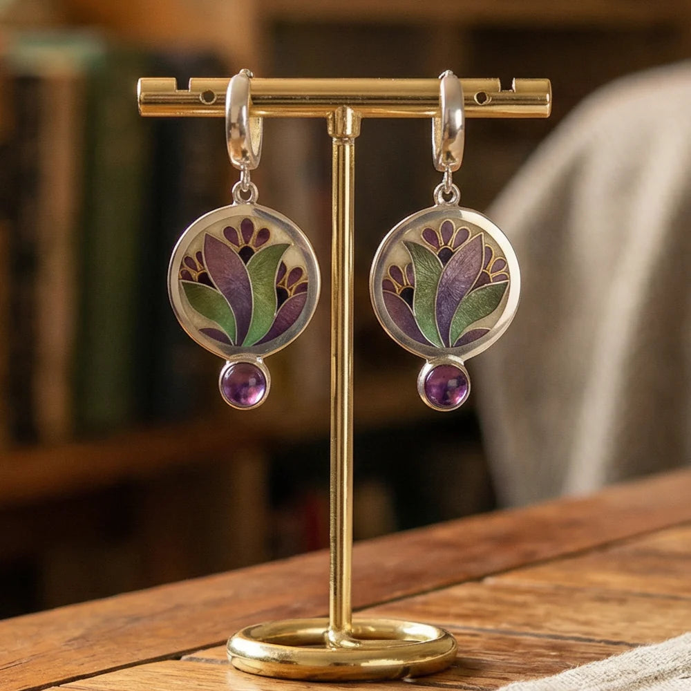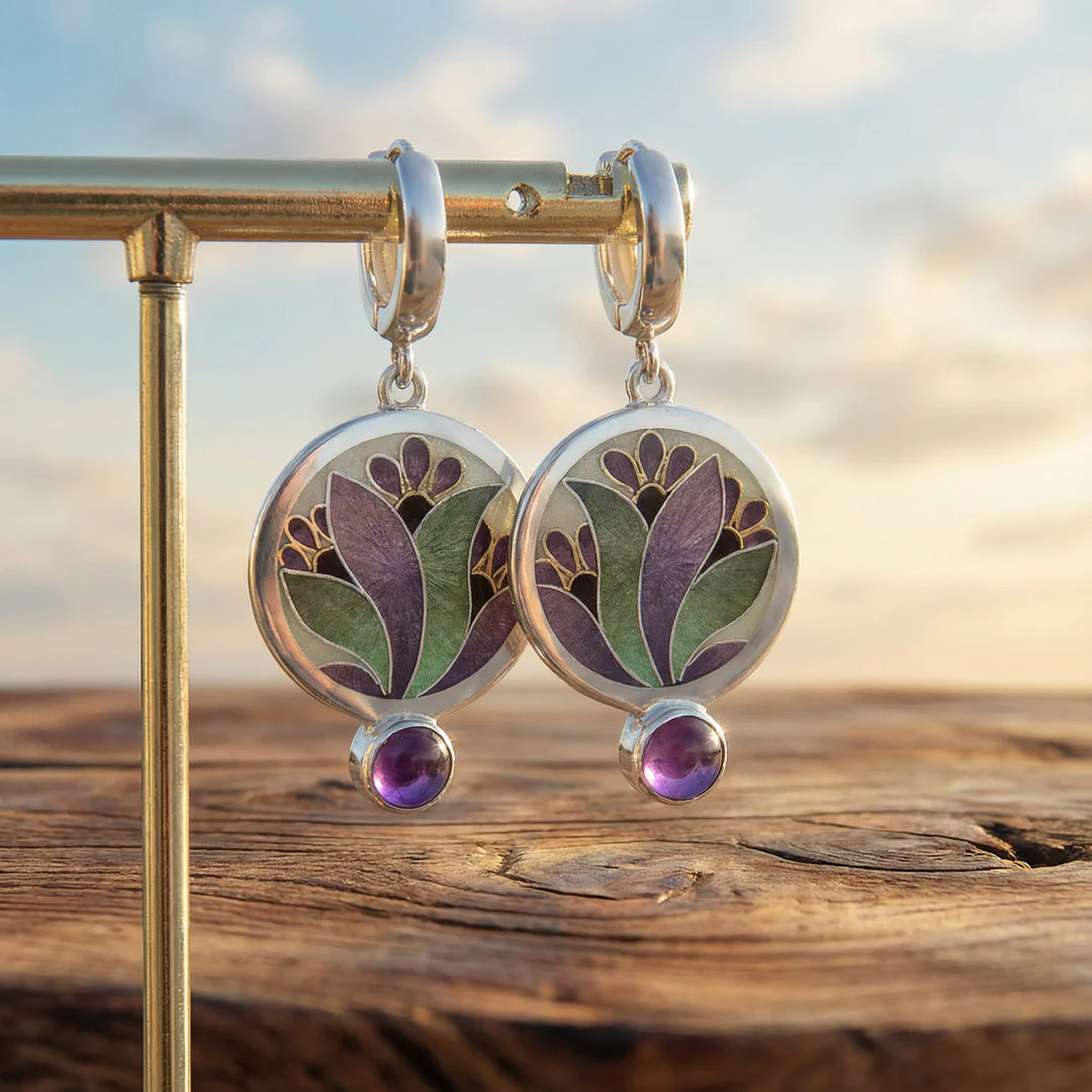 Kolczyki Boho Kryształy Fioletowe Srebro